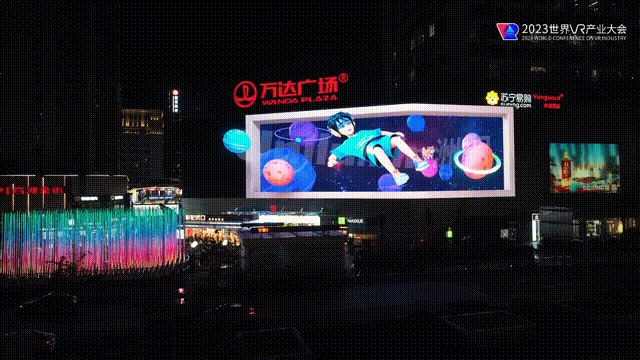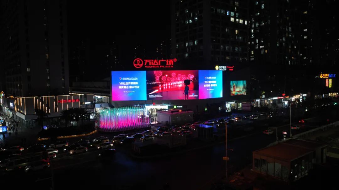 南昌市紅谷灘區是當地繁華的核心商圈,同時也是VR產業的核心承載區。2023世界VR產業大會期間,合計1200平米的洲明UfixⅡ系列LED 8K顯示屏點亮萬達廣場,這是江西最大裸眼3D屏“秋水之光”。