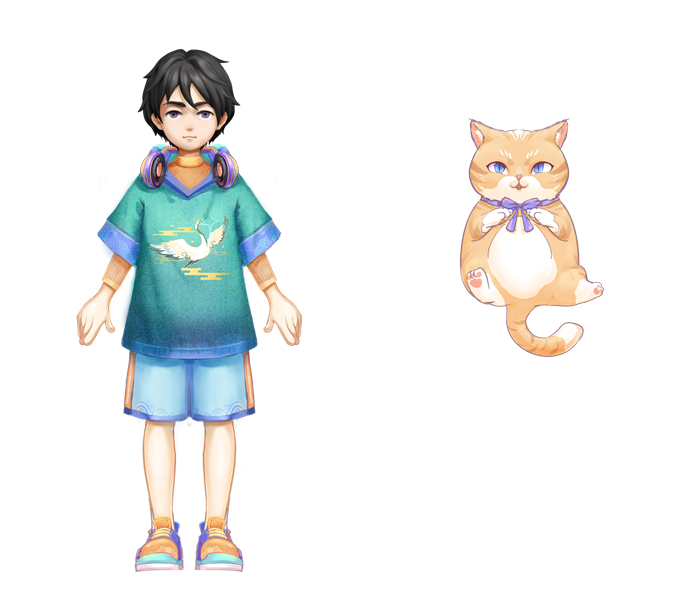 洲明團隊深入挖掘中華傳統文化,在形象設計上融合祥云、仙鶴等典型的南昌在地文化形象與國潮IP、時尚等元素,而男孩與橘貓八尾的羈絆也寓意著南昌既有人情味,也是一座充滿想象力的城市。