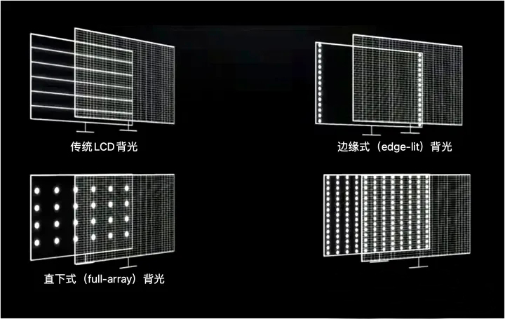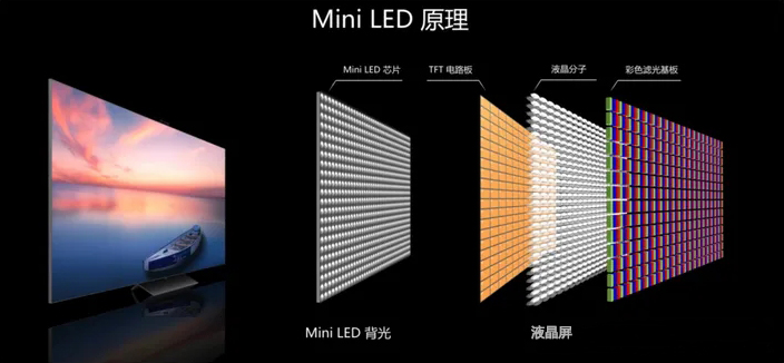 Mini-LED也是以LCD為依托的一種背光技術,它在傳統LED背光基礎上縮小了LED尺寸,從而提高了背光控制精度。