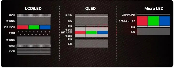 Micro LED使用了微型LED作為像素,每個像素都可以獨立發光。這使得Micro LED電視具有類似OLED的自發光特性,同時也就避免了OLED的一些缺點。